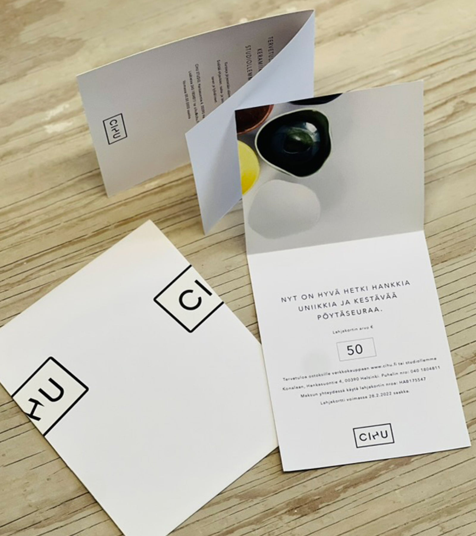 Olemme juhlaihmisiä, tai enemmänkin osa juhlien hiljaista taustajoukkuetta. Rakastamme yhdessä olemista, hyvää ruokaa ja visuaalista kauneutta. Kertakäyttöastioiden sielukkuudesta kun ei saa kirjoitettua edes yhtä lausetta, eikä kevyttä novellia, asialle täytyi tehdä jotain. Juhlat, illanistujaiset tai kodinillat ovat täydellisiä silloin, kun pöydässä on hyvää ruokaa ja seura on hyvää. Oleellinen osa tähän kokemukseen ovat astiat, joiden ympärillä koko ainutlaatuinen hetki vietetään. Hetki on uniikki ja siihen on kiva palata vuosienkin päästä – aivan kuten jokainen CIHU-tuotekin.